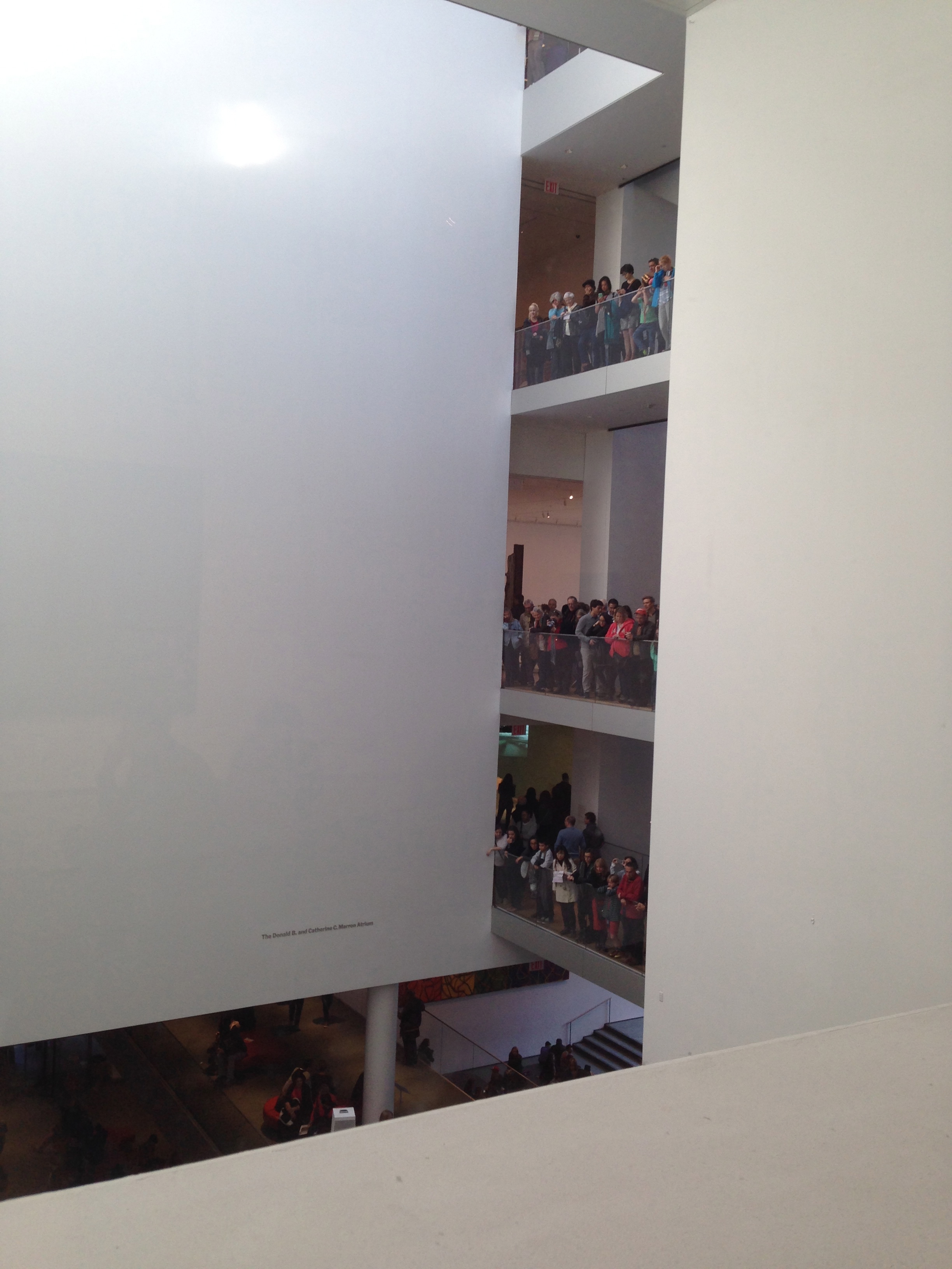 The extended performance period allowed for a view-as-you-wish audience experience. While some spectators chose to sit along the side walls and post up for an hour or more, others paused while on their way to other exhibits. Lucky for them, every floor has at least one vantage point overlooking the atrium, making it easy to check in on the dancers between exhibit visits.