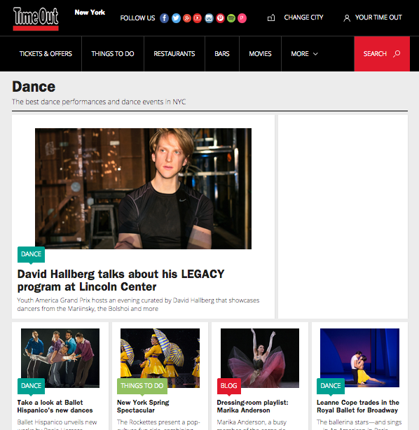Yesterday morning, the news broke that after May 1, 2015, Time Out New York will no longer publish a standalone Dance section in its weekly magazine. Instead, dance coverage will be greatly reduced and integrated into a new Theater and Dance section.