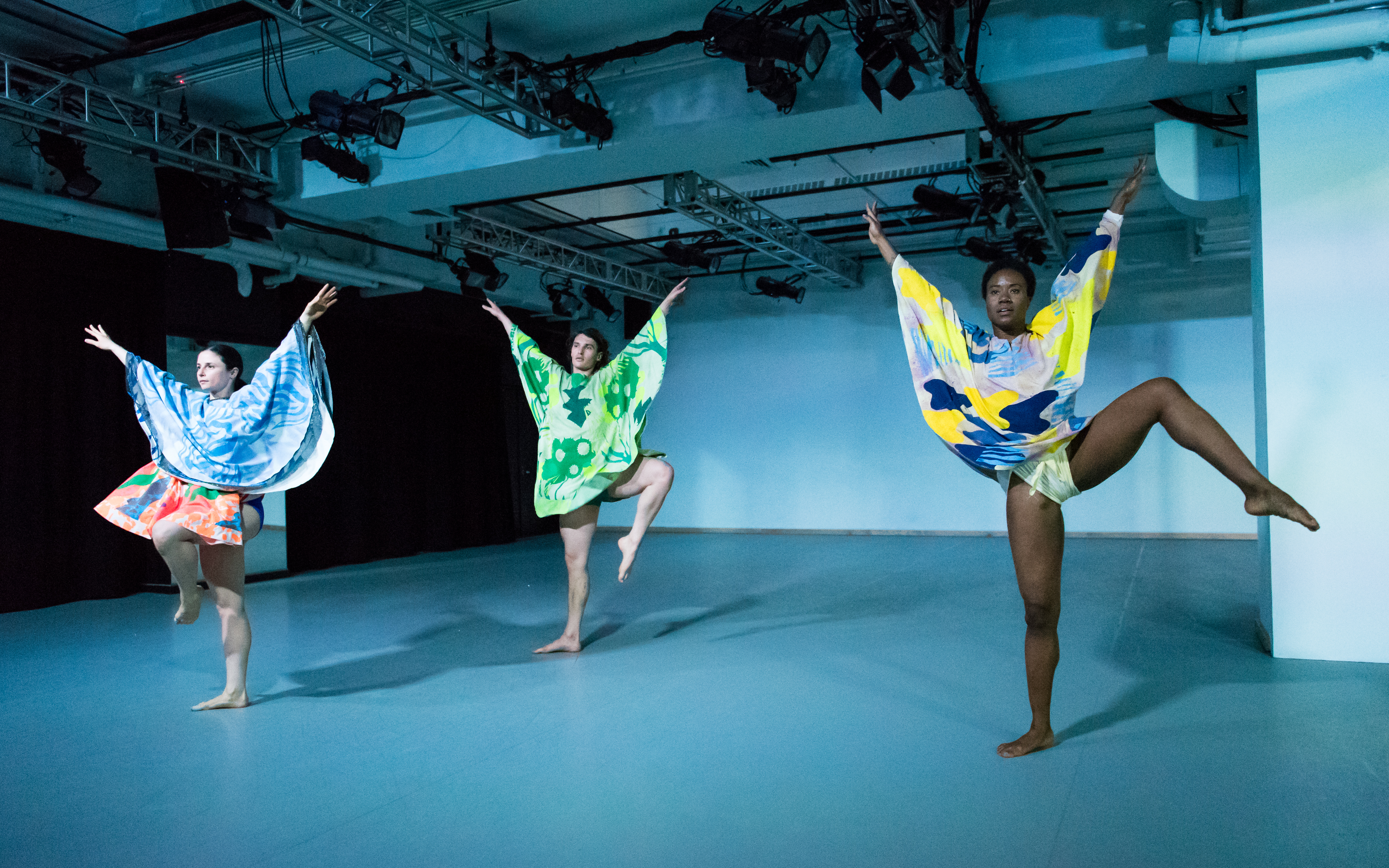 There is less exploration in the third section, but there is another costume change – fringe layers for Ingle and Omagbemi and makeshift leotards for MacDonald and Warner. Mixing sleek fits with wildly waving strips of fabric reveals how movement can reverberate past fingertips and toes.